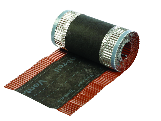 Назначение: служит для обеспечения естественной вентиляции подкровельного пространства крыш из натуральной черепицы и предотвращения задувания снега и воды под конек. Представляет собой мембрану из прочного нетканного полипропиленового материала с двумя боковыми гофрированными полосами из алюминия.